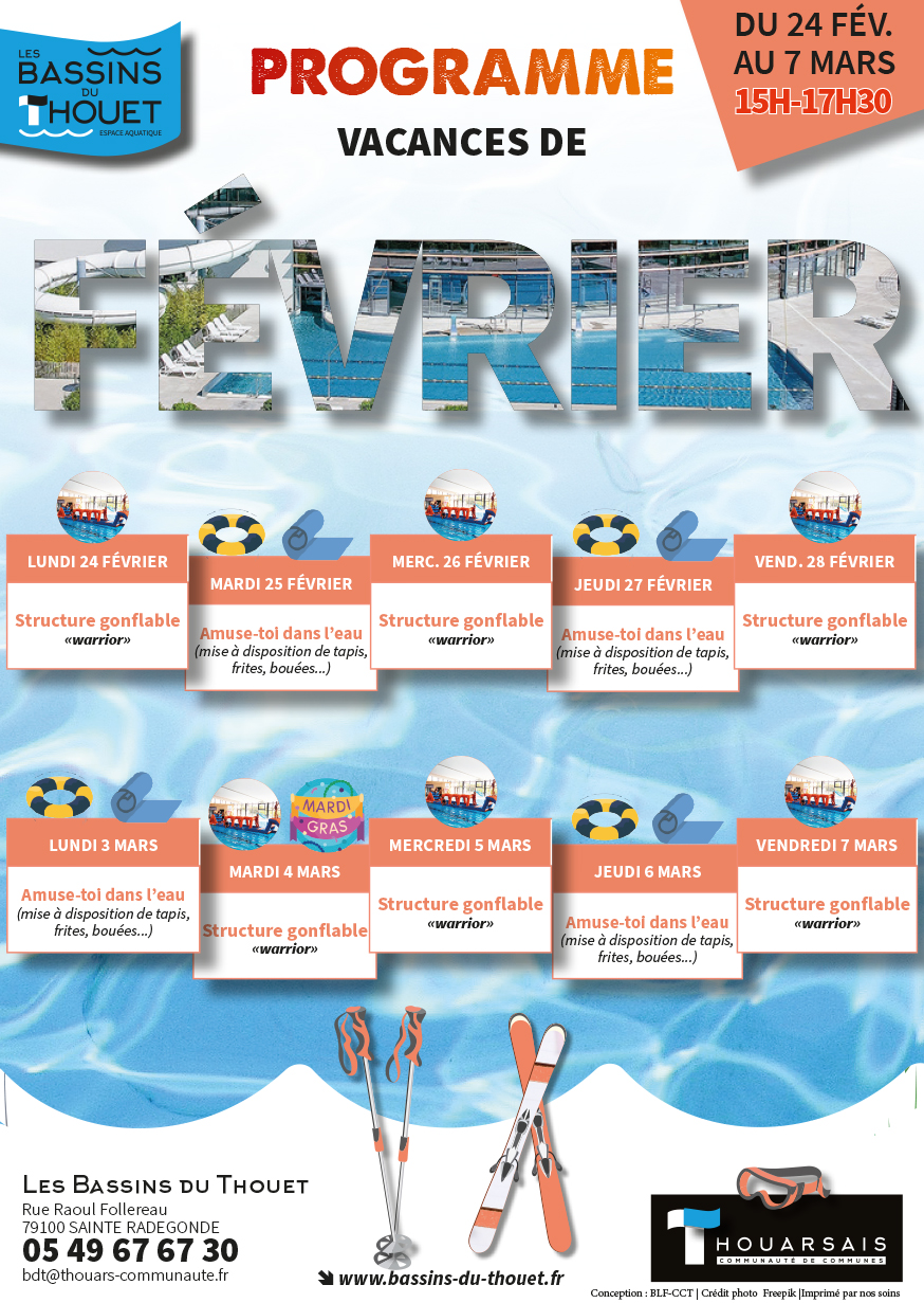 Horaires et Animations Spéciales Vacances de Février aux Bassins du Thouet