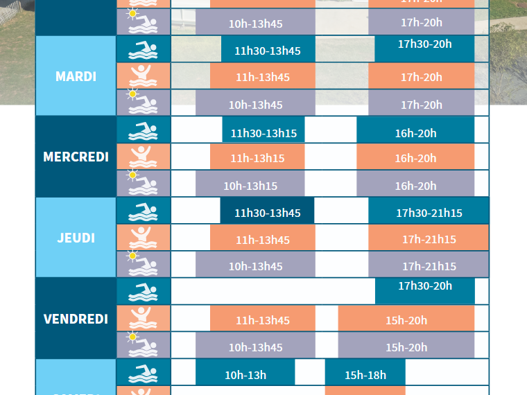 À partir du jeudi 4 septembre 2025, les piscines du Thouarsais passent aux horaires période scolaire. 👉 Consultez le planning complet des bassins (intérieur, ludique et extérieur) ci-dessous...