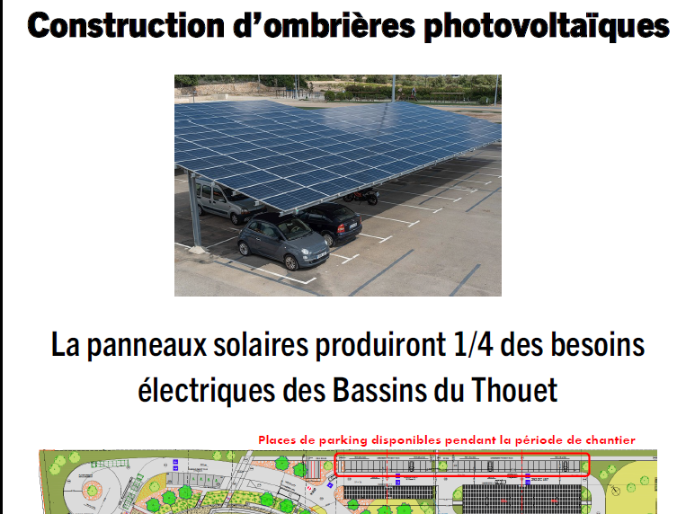À partir de mars et jusqu’en juin 2025, des travaux seront réalisés sur le parking des Bassins du Thouet pour la construction d’ombrières photovoltaïques. ✅ Des places de stationnement...