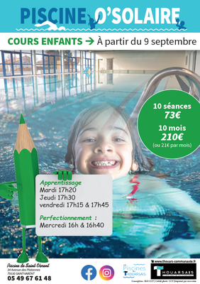 Les cours de natation enfants reprennent à partir du 8 septembre aux Piscines du Thouarsais !