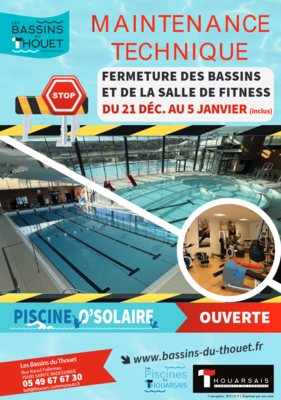 Les Bassins du Thouet seront fermés du 21 décembre au 5 janvier inclus pour maintenance technique.