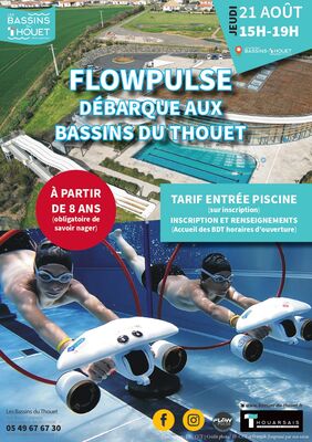 Après un franc succès en octobre dernier, le Flowpulse est de retour aux Bassins du Thouet le jeudi 21 août de 15h à 19h pour une animation aquatique ludique et accessible dès 8 ans (savoir nager obligatoire).