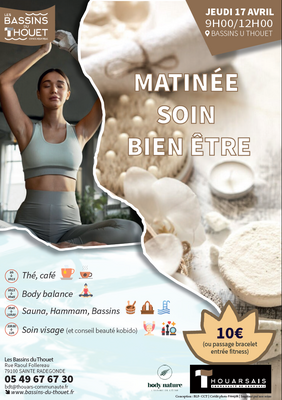 Les Bassins du Thouet vous invitent à une matinée cocooning placée sous le signe de la détente et du bien-être. Profitez d'un moment privilégié pour prendre soin de vous et vous ressourcer.
