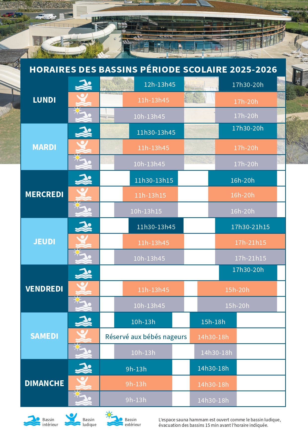 Nos horaires d'ouvertures à la piscines O'Solaire de Saint-Varent et aux Bassins du Thouet à Thouars !
