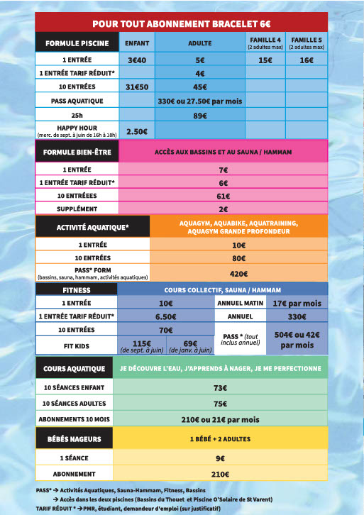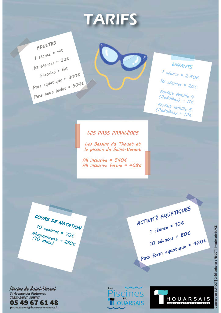 Nos Tarifications à la piscines O'Solaire de Saint-Varent et aux Bassins du Thouet à Thouars !